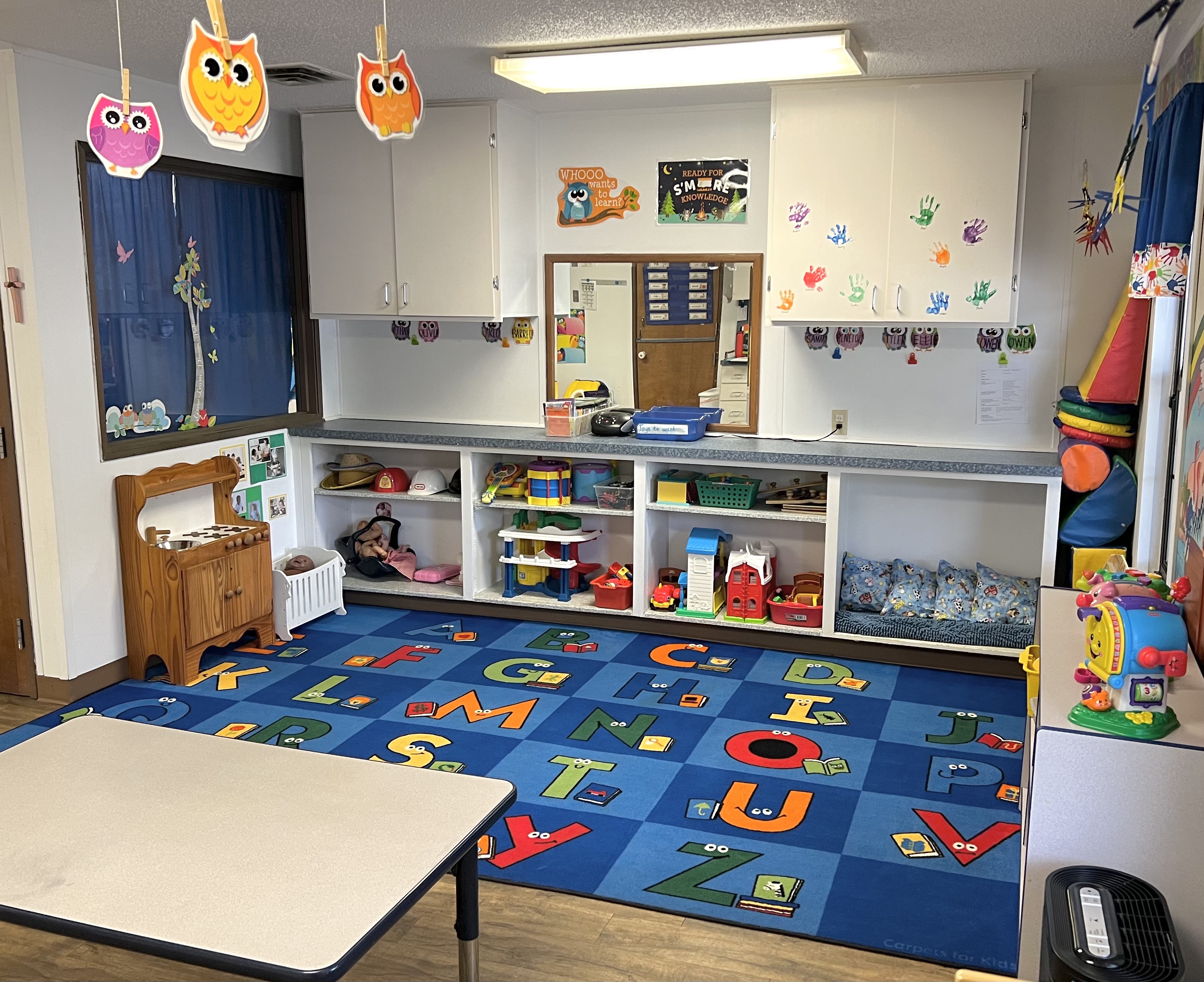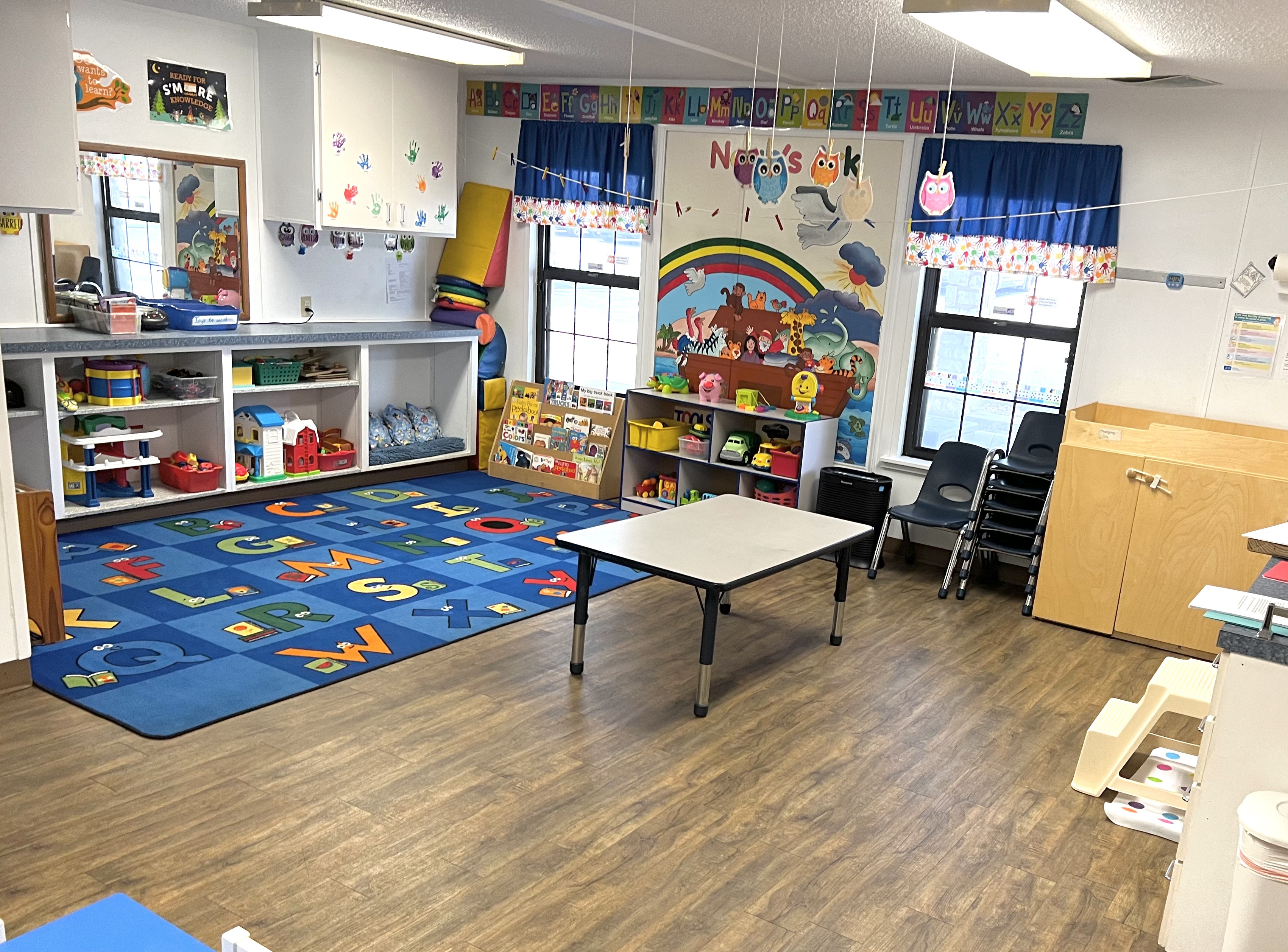 Our one-year-old classes meet on Mondays and Wednesdays, and Tuesdays and Thursdays, from 9:30 a.m. to 1:30 p.m. Each class consists of five children with one teacher and a part-time aide. To enroll, children must be at least 12 months old by September 1st of the year they enter Covenant UMC Preschool.