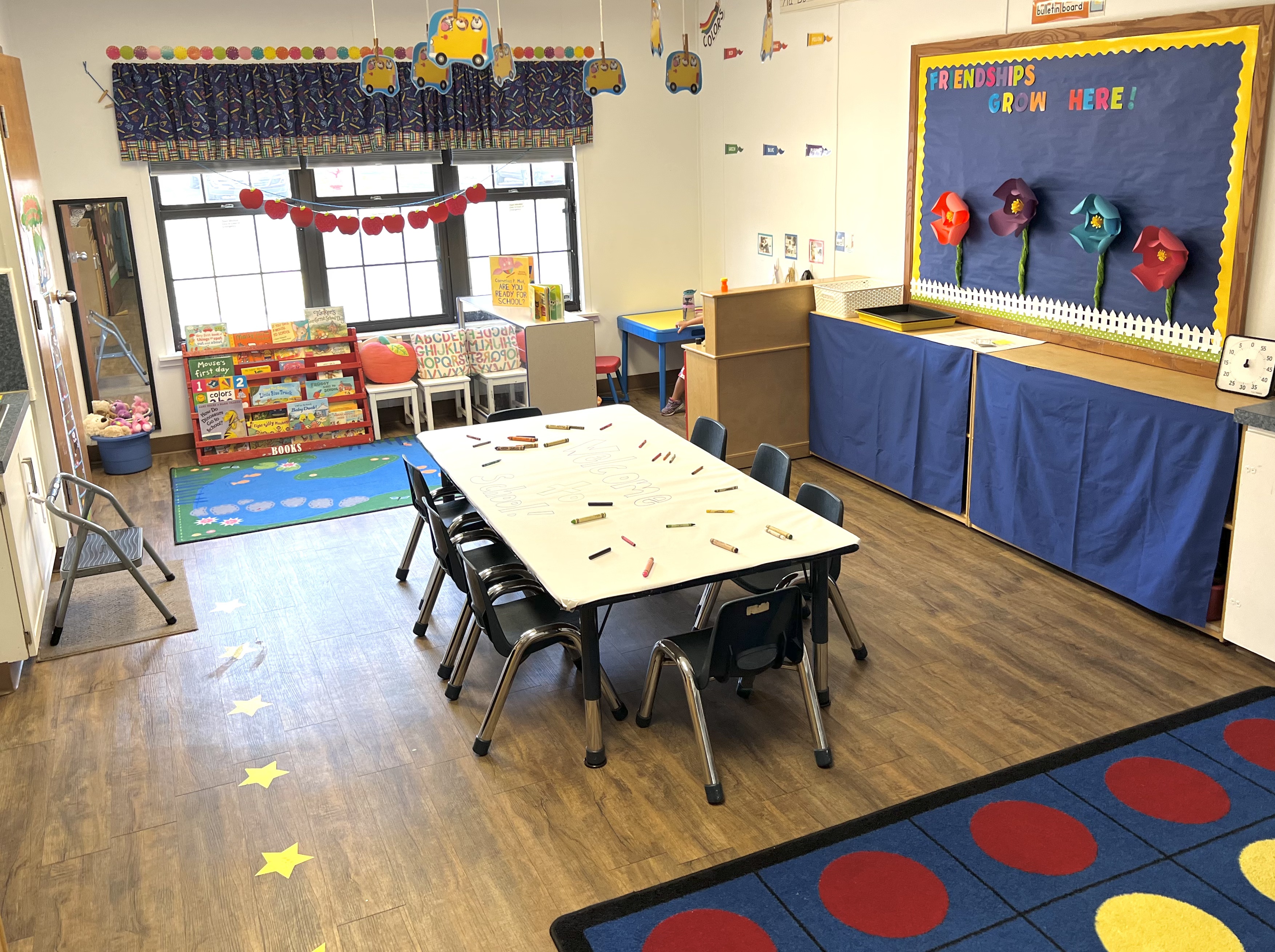 Our two-year-old classes meet on Mondays and Wednesdays, and Tuesdays and Thursdays, from 9:30 a.m. to 1:30 p.m. Each class consists of up to eight children with two teachers. To enroll, children must be two years old by September 1st of the year they enter Covenant UMC Preschool in a two’s class.